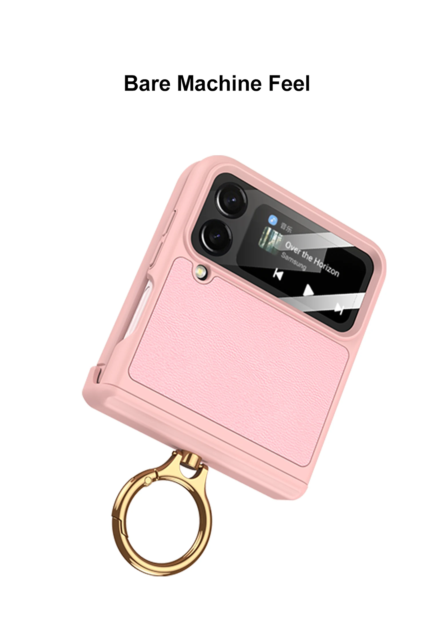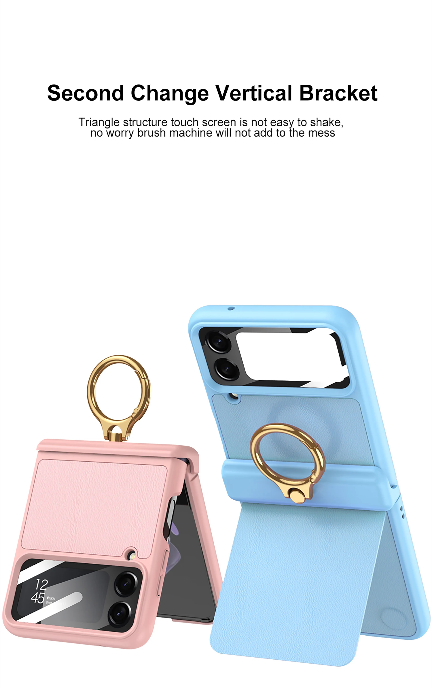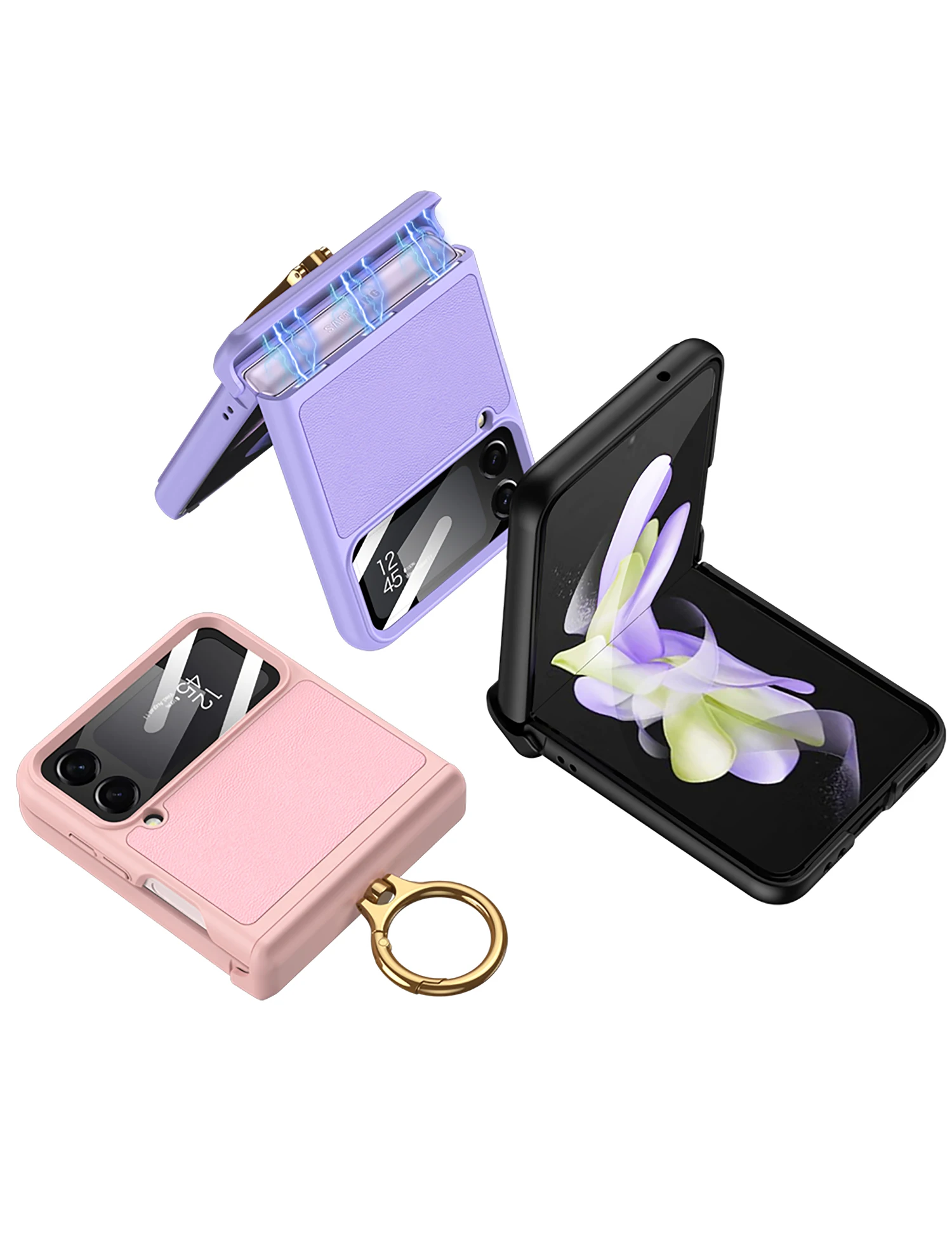 เคสแม่เหล็กพับหนังพร้อมวงแหวนสำหรับ Samsung Galaxy Z Flip5/4/3 5G