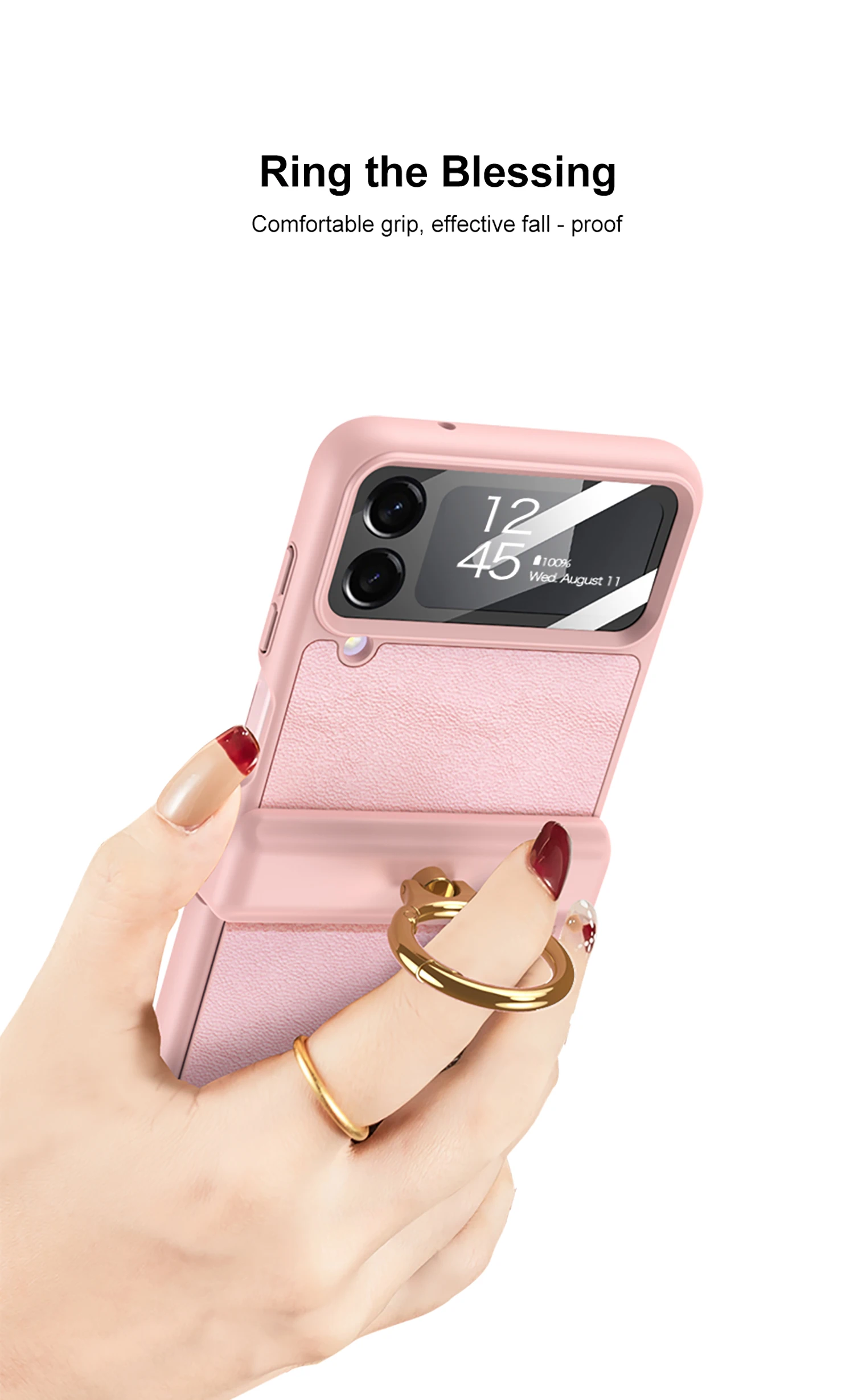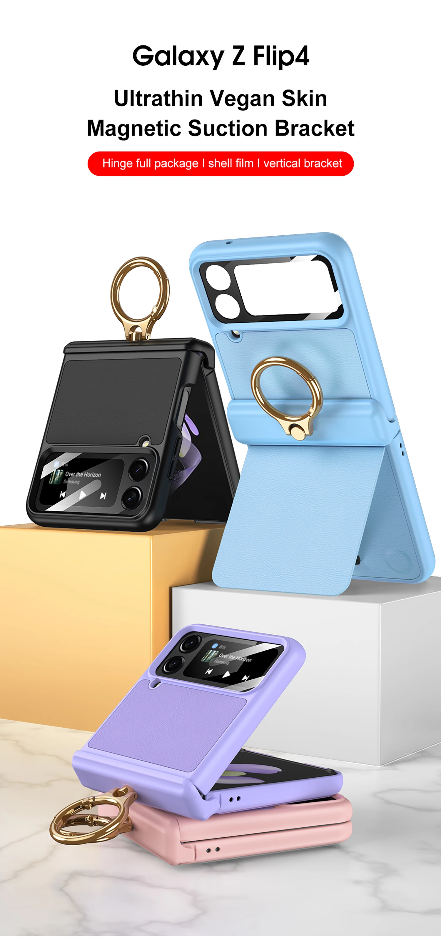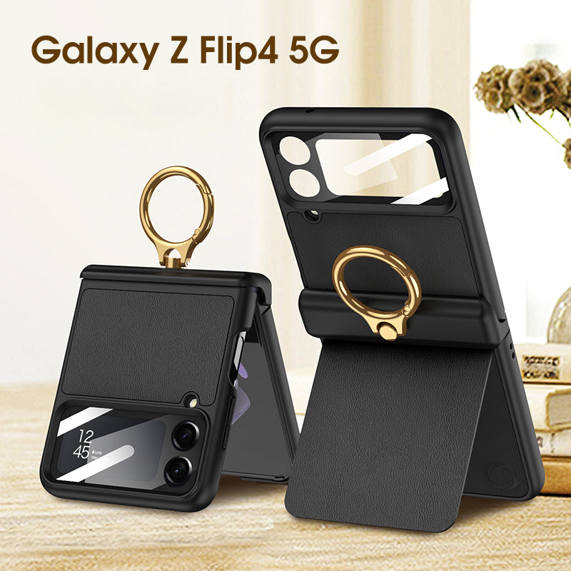 เคสแม่เหล็กพับหนังพร้อมวงแหวนสำหรับ Samsung Galaxy Z Flip5/4/3 5G