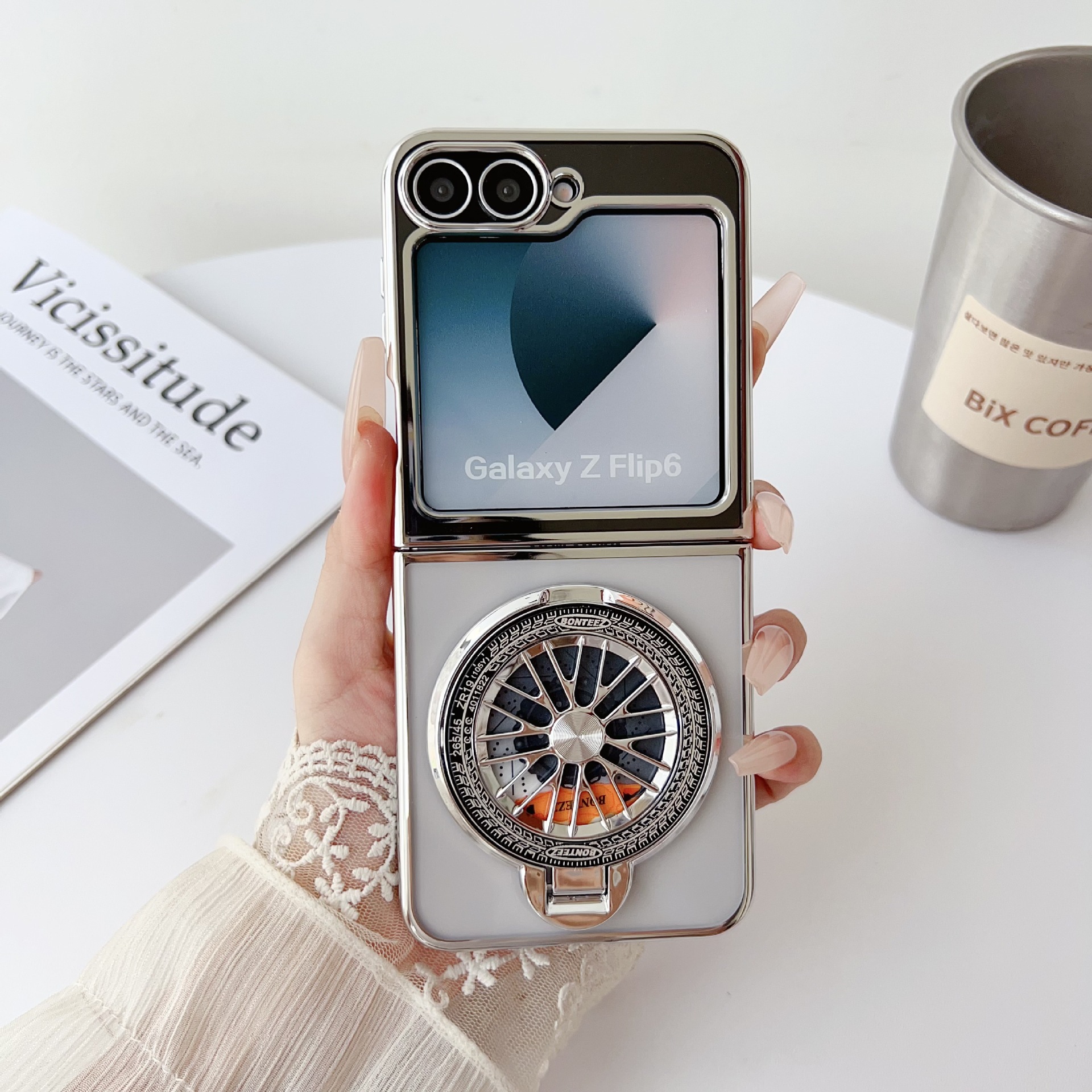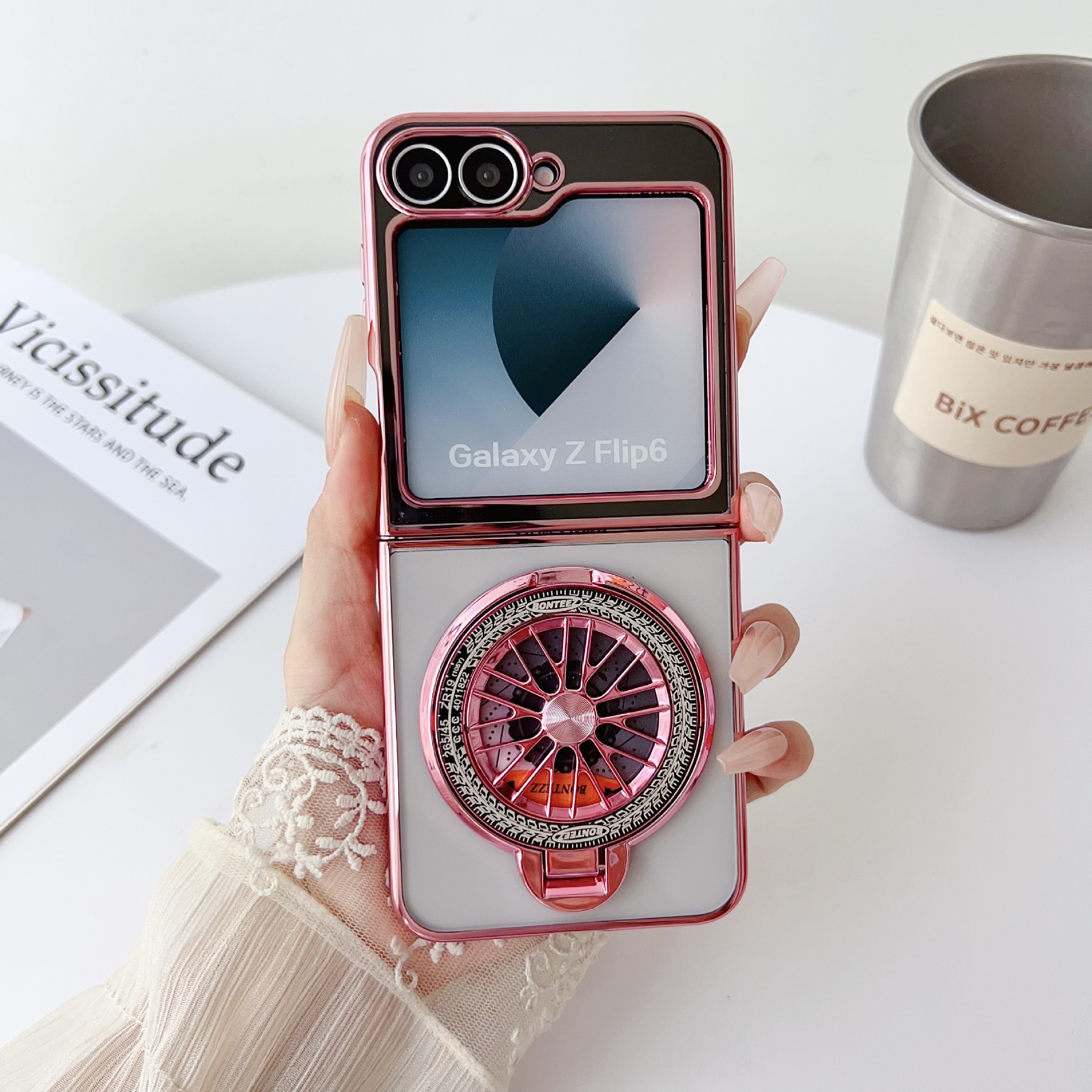 เหมาะสำหรับ Samsung Z Flip7/6/5/4/3 ใหม่ electroplated ไจโรโปร่งใสเคสโทรศัพท์มือถือ