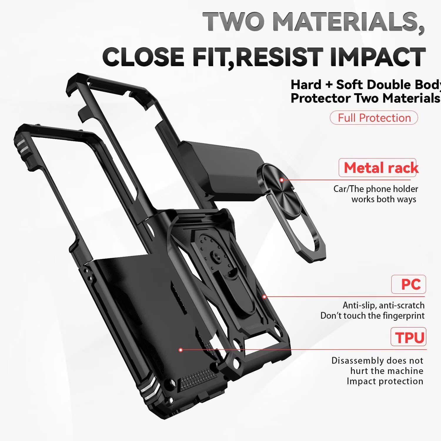 - วัสดุไฮบริดสองชั้น: PC แข็ง + TPU ยืดหยุ่น