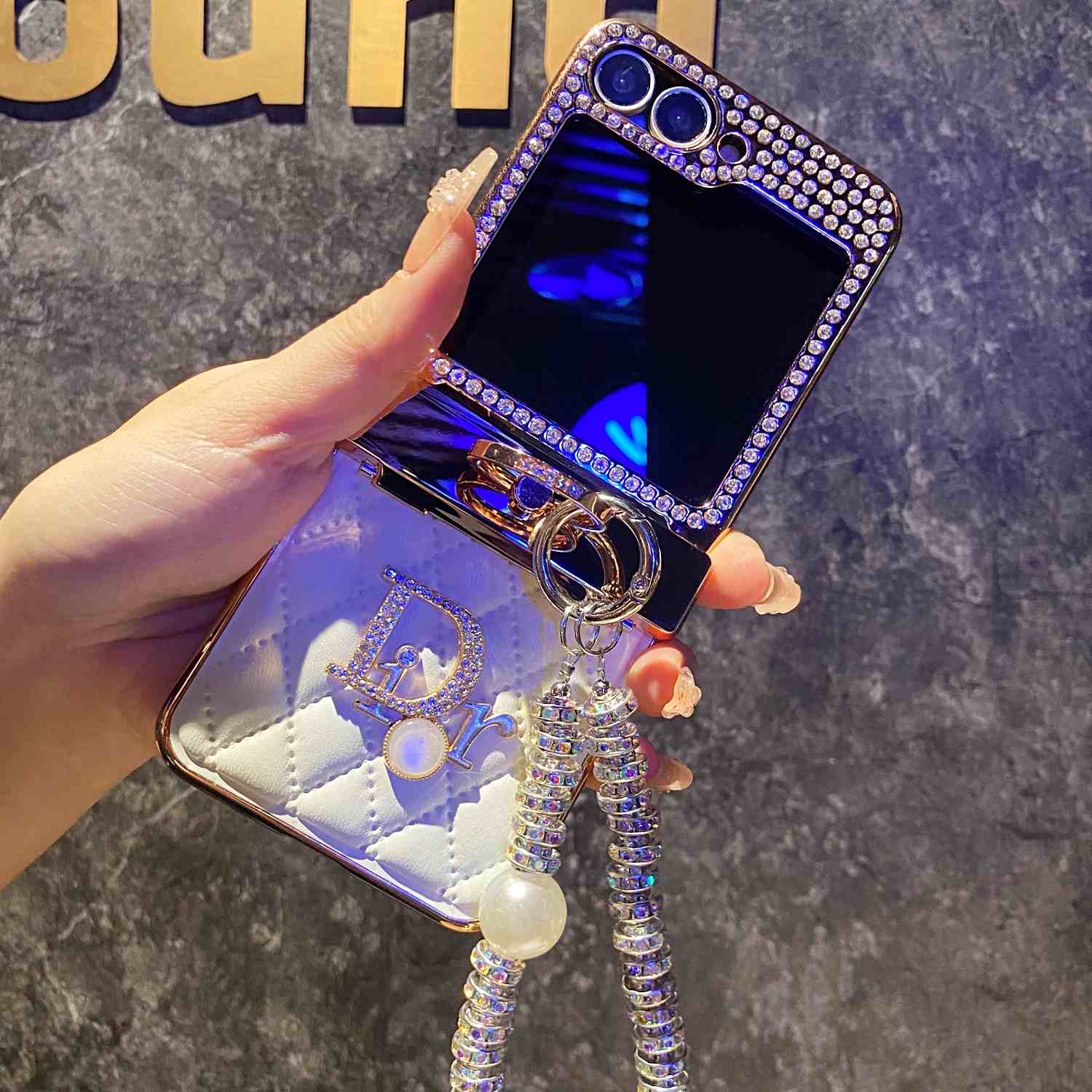 เคสโทรศัพท์มือถือแบบแบรนด์ร่วมระดับไฮเอนด์ที่ฝังลายเพชรใหม่สำหรับ Samsung Z Flip7/6/5/4/3