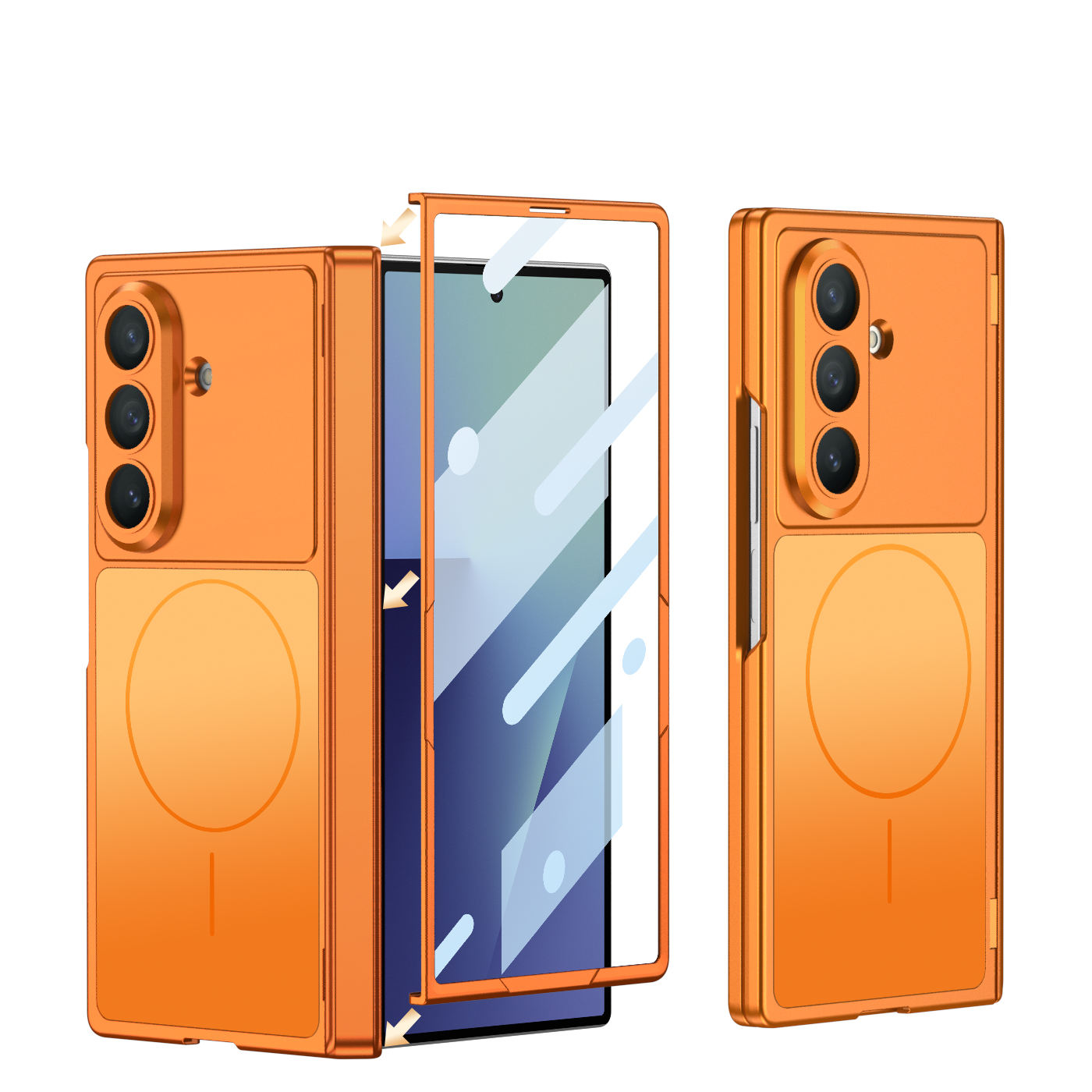 เคสป้องกันแบบเต็มพื้นที่สีพื้นใหม่ พร้อมระบบชาร์จไร้สายและบานพับแม่เหล็ก สำหรับ Samsung Z Fold7/6
