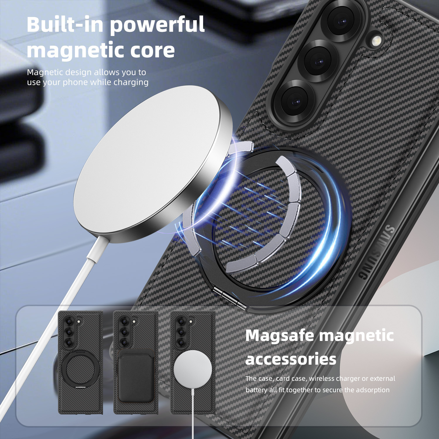 เข้ากันได้กับขาตั้งแม่เหล็ก 360 องศารุ่นใหม่ของ Samsung Z Fold7/6/5/4/3 และเคสป้องกันพื้นผิวเคฟลาร์