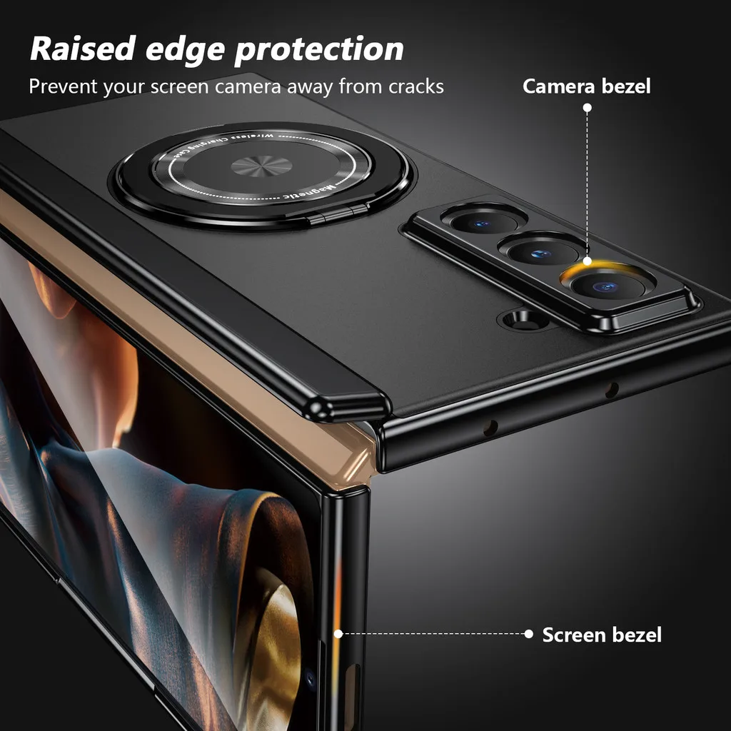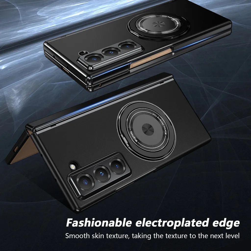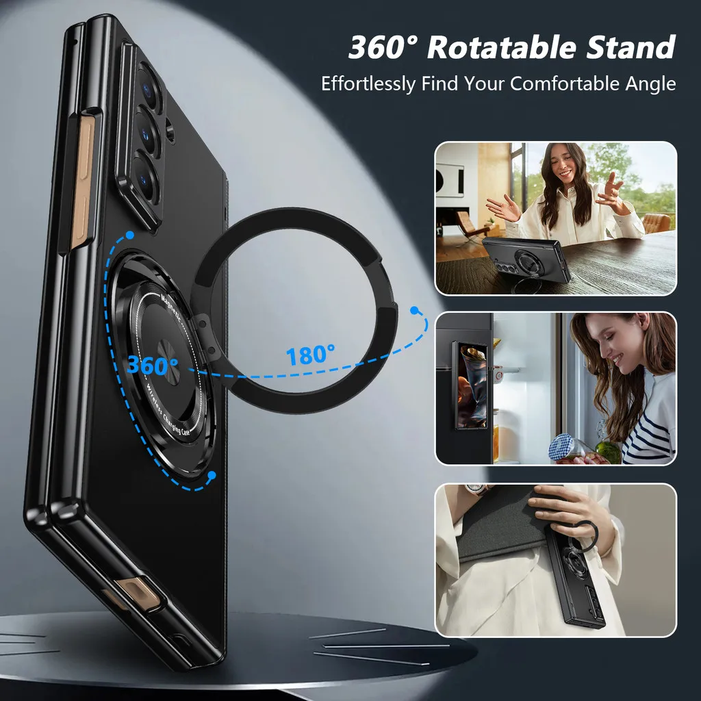 เหมาะสำหรับ Samsung Z Fold7/6/5/4/3 เคสป้องกันแบบครอบเต็มพร้อมขาตั้งแม่เหล็กหมุนได้ 360 องศา