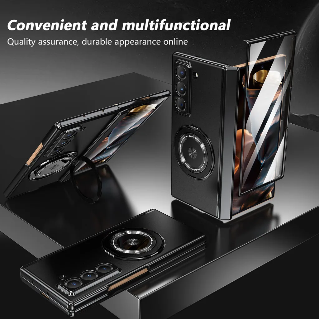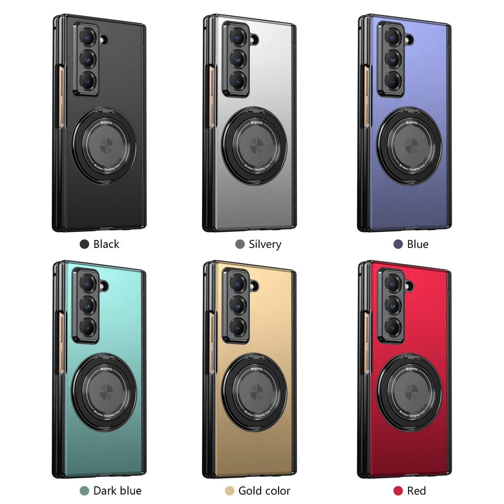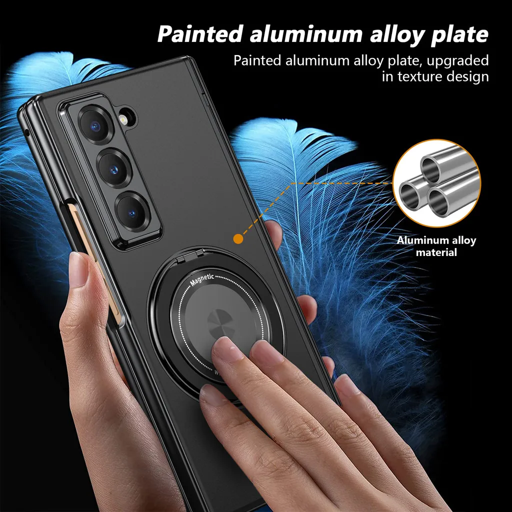 เหมาะสำหรับ Samsung Z Fold7/6/5/4/3 เคสป้องกันแบบครอบเต็มพร้อมขาตั้งแม่เหล็กหมุนได้ 360 องศา