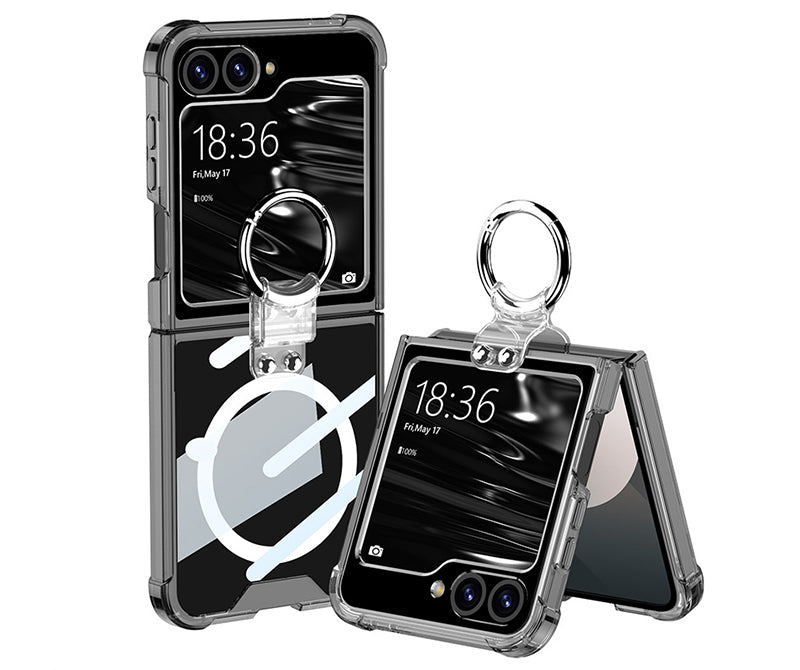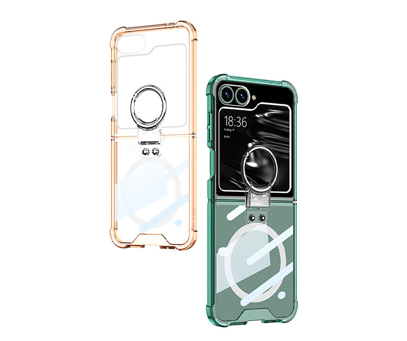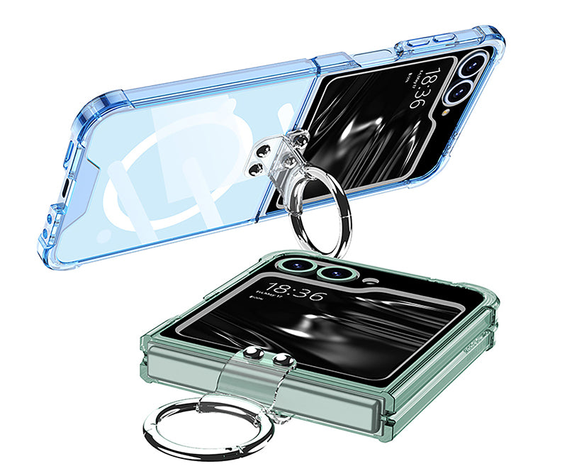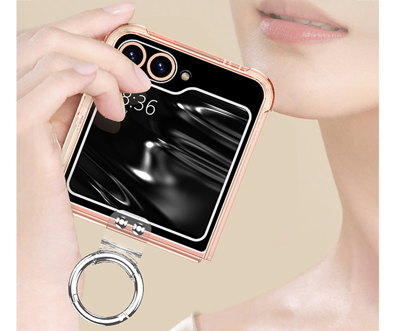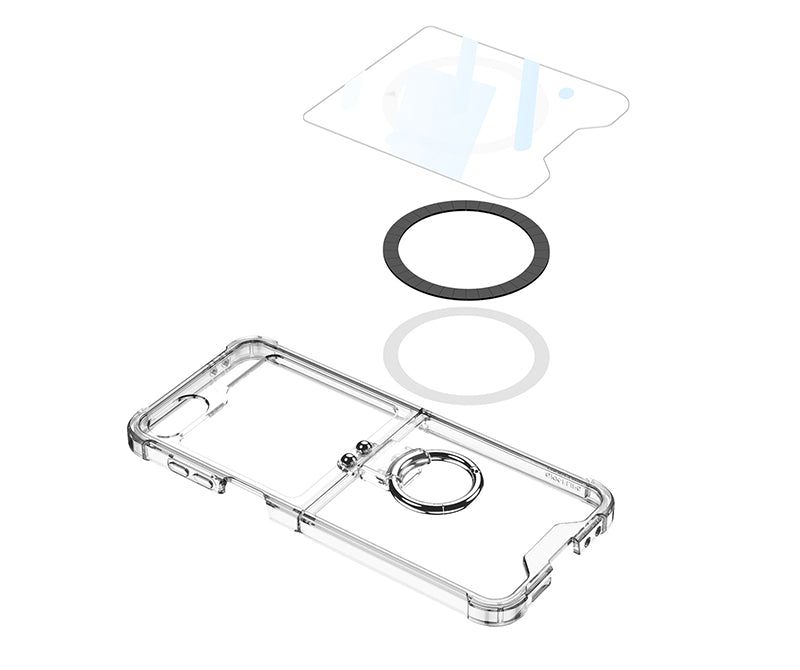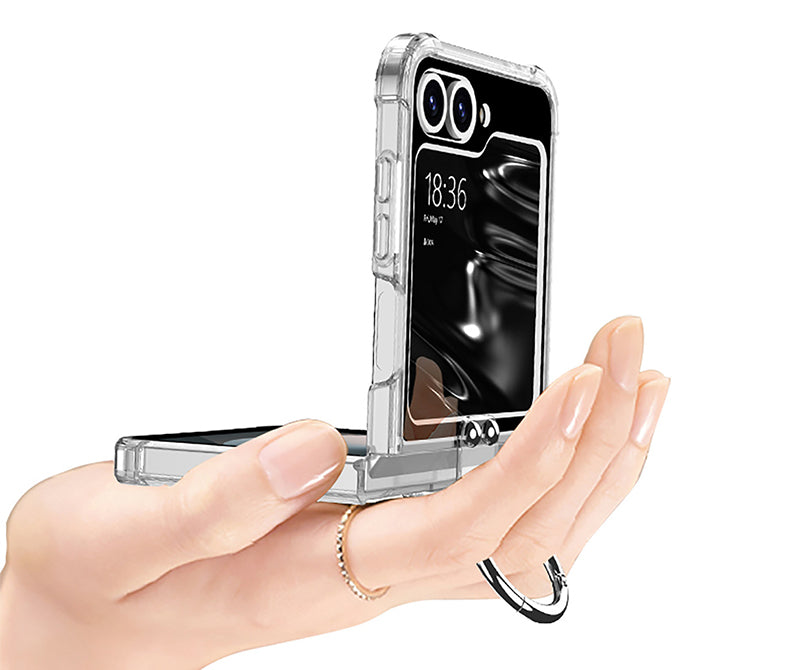 เคสป้องกันแบบใสทำจากวัสดุ PC ใสพร้อมการเคลือบสารป้องกันแบคทีเรียและป้องกันรอยนิ้วมือในตัว ทำให้เคสโทรศัพท์โปร่งใสและสวยงาม ขณะเดียวกันก็ปกป้องโทรศัพท์ เผยให้เห็นสีสันที่สะดุดตาดั้งเดิมของโทรศัพท์และเน้นการออกแบบของ Galaxy Z Flip6 การออกแบบหัวเข็มขัดแบบแหวน ช่วยให้ถือได้ปลอดภัยยิ่งขึ้น ไม่เพียงแต่มีน้ำหนักเบาและเรียบง่ายเท่านั้น แต่ยังทนทานเป็นอย่างยิ่งอีกด้วย